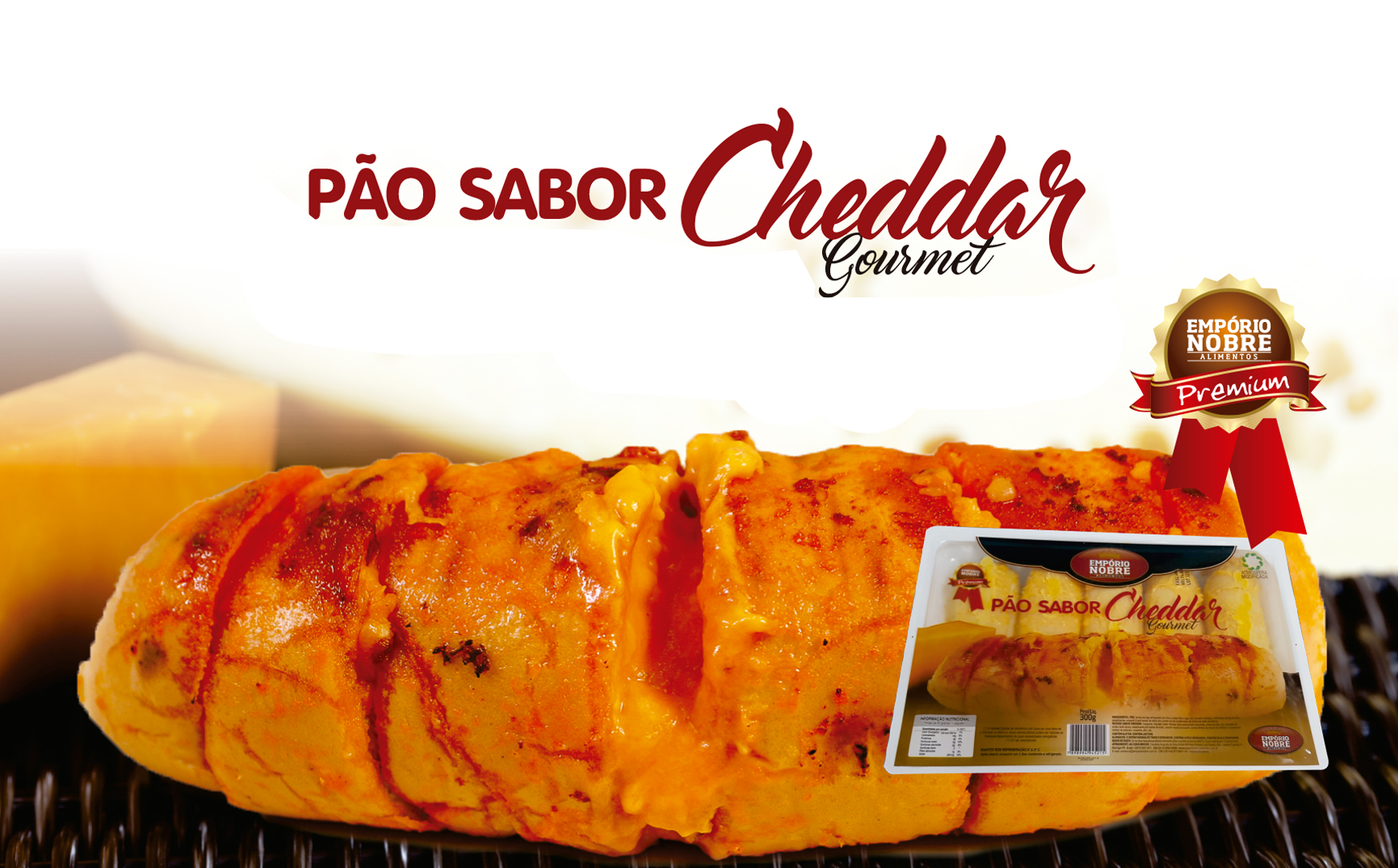 Pão de Cheddar: Produzido a partir do requeijão de cheddar seu recheio leva ainda alho selecionado, que dão um contraste especial. Adorado por jovens e crianças, faz desse produto indispensável, não só para churrascos, mas também para o dia a dia.